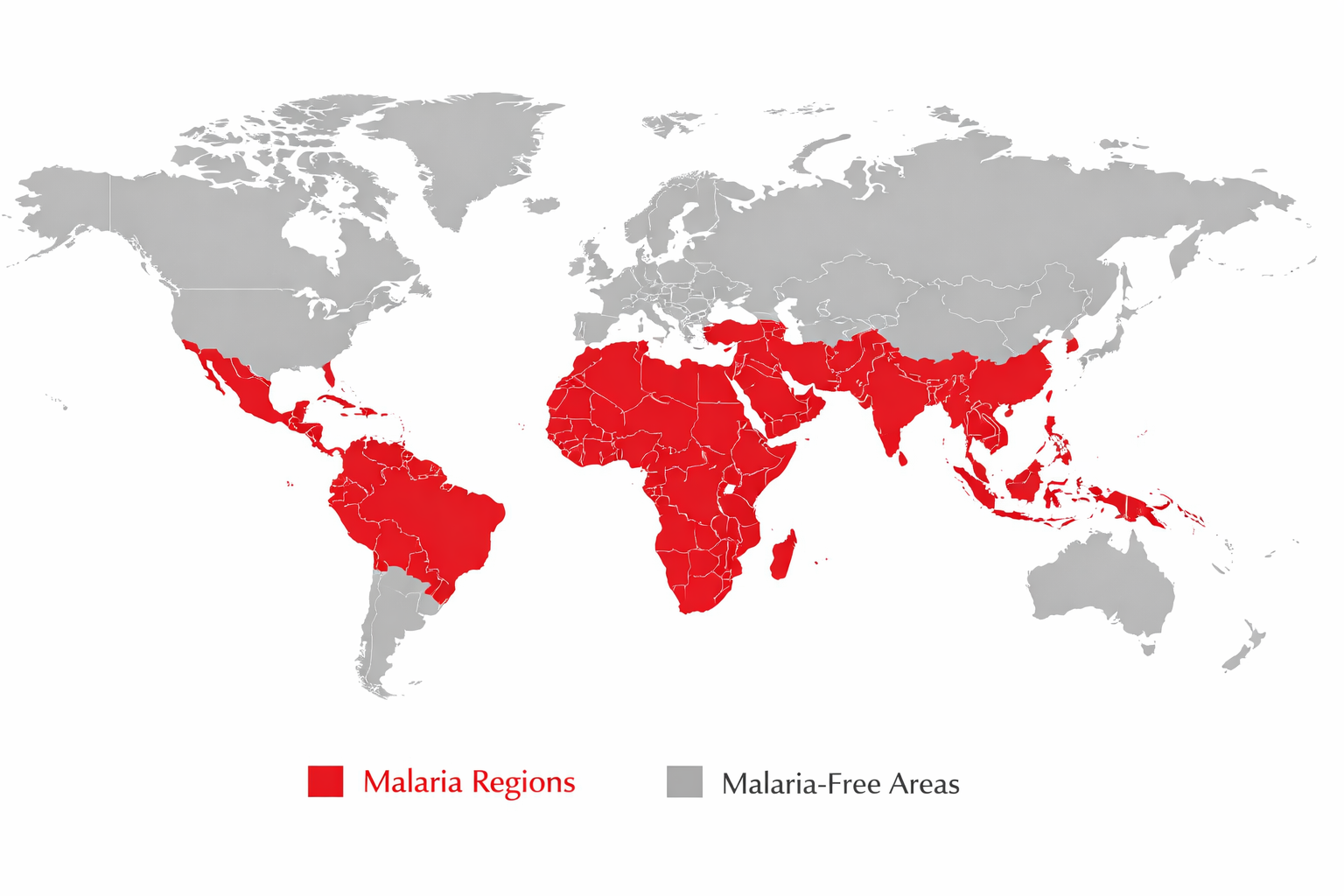 Malaria risk areas worldwide - Risk varies by region, altitude, and season